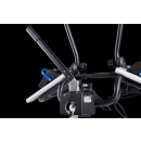 Die breiten, einstellbaren Kunststoffteile in Verbindung mit Schnellverschlussriemen und großer Länge ermöglichen eine sichere und komfortable Befestigung der Räder, einschließlich Fatbikes mit Reifenbreiten bis zu 4,8“. Die verstellbaren Fahrradhaltearme sind mit Gummischonern ausgestattet, um den Fahrradrahmen zu schützen und eine sichere Fixierung zu gewährleisten.